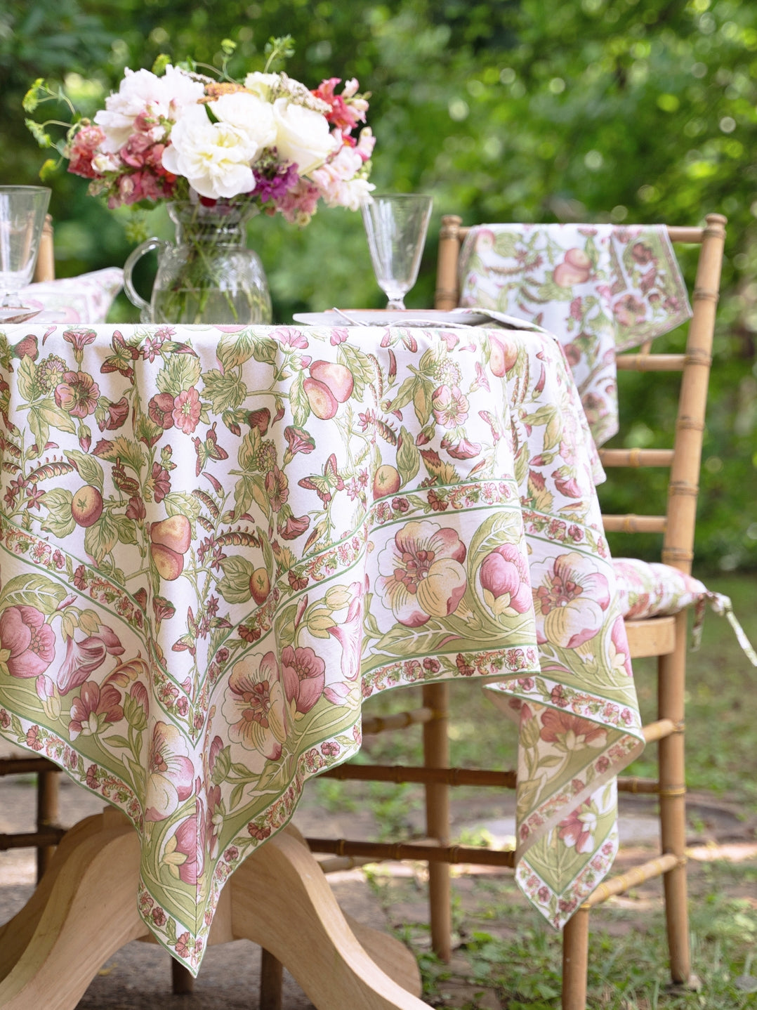 The Savannah 60" x 90" Dining Tablecloth brings signature April Cornell artistry to your table. Featuring a beloved print from 1992, this classic ivory tablecloth transforms everyday meals and special gatherings into memorable occasions with effortless style.
