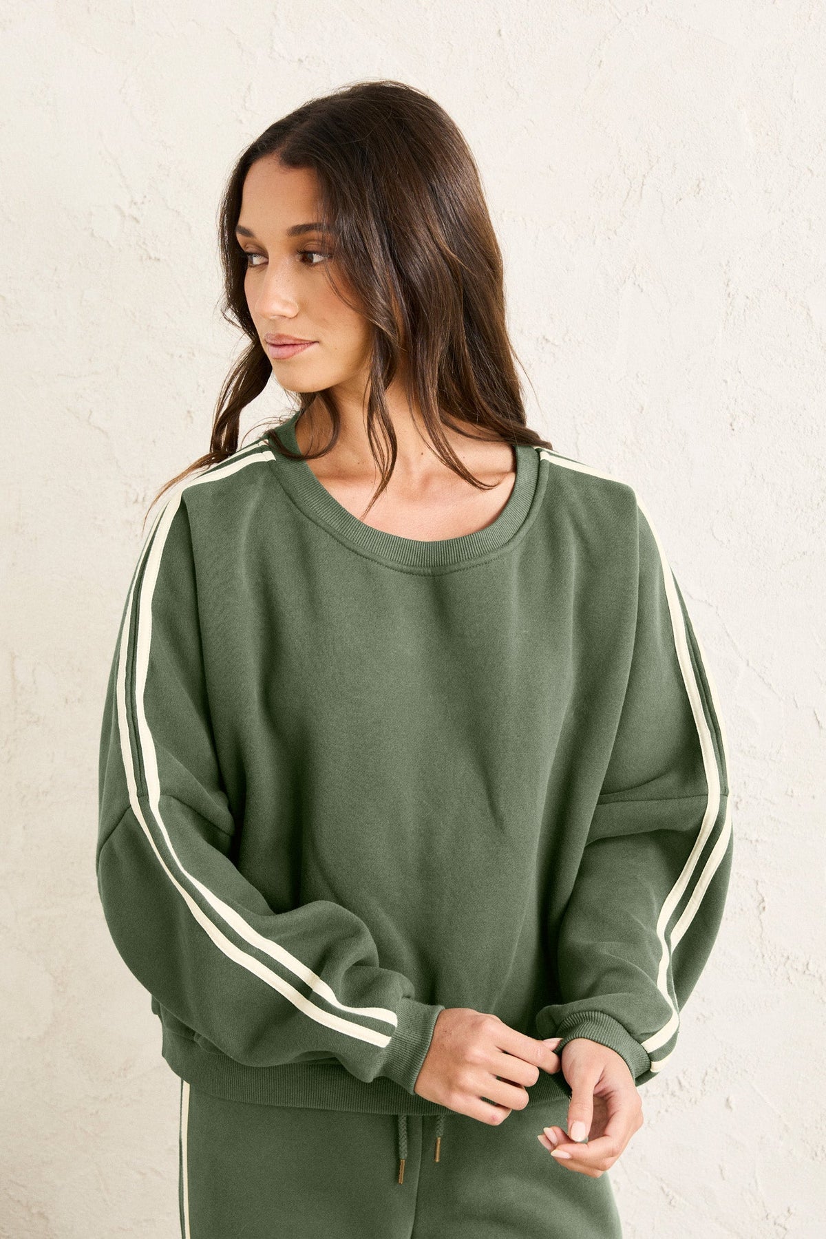 Designed for all-day comfort, the Contrast Sweatshirt features an oversized silhouette, contrast stripe detailing, Rhythm-branded trims, and ribbed collar, hem, and cuffs.