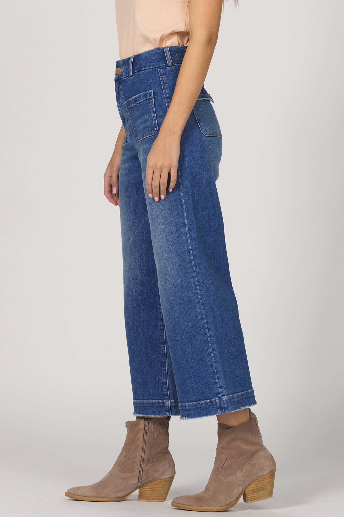 Perfect fitting Audrey high rise clean hem jeans designed with a contemporary fit, offering a sleek silhouette. Crafted with a focus on comfort and style, perfect for versatile wear from casual outings to more polished looks. The neat finish and structured design make them an essential addition to any wardrobe.