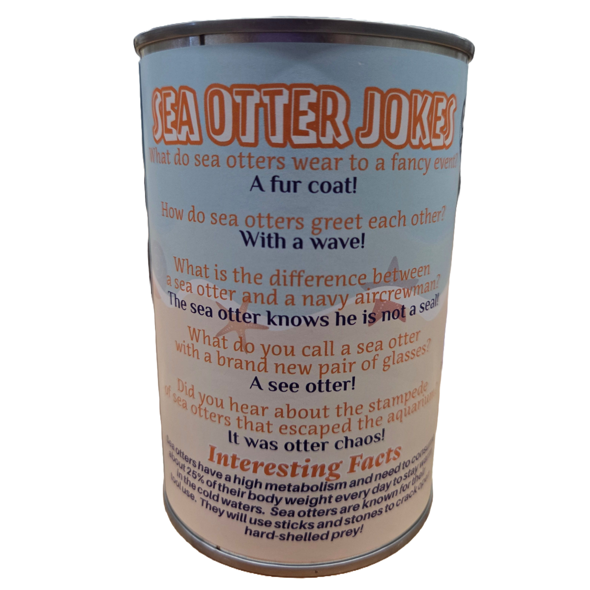 • Sea otter plush sealed in a can• Eco-friendly: Made from recycled plastic water bottles• Plush measures approx. 5 inches• Funny sea otter jokes and interesting facts on the can