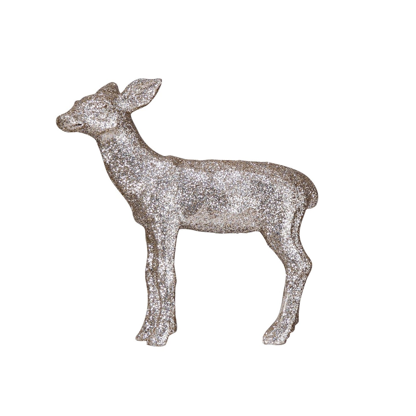 Deer - 3-3/4"L x 1"W x 4-1/4"H Resin Deer, Silver Glitter Finish