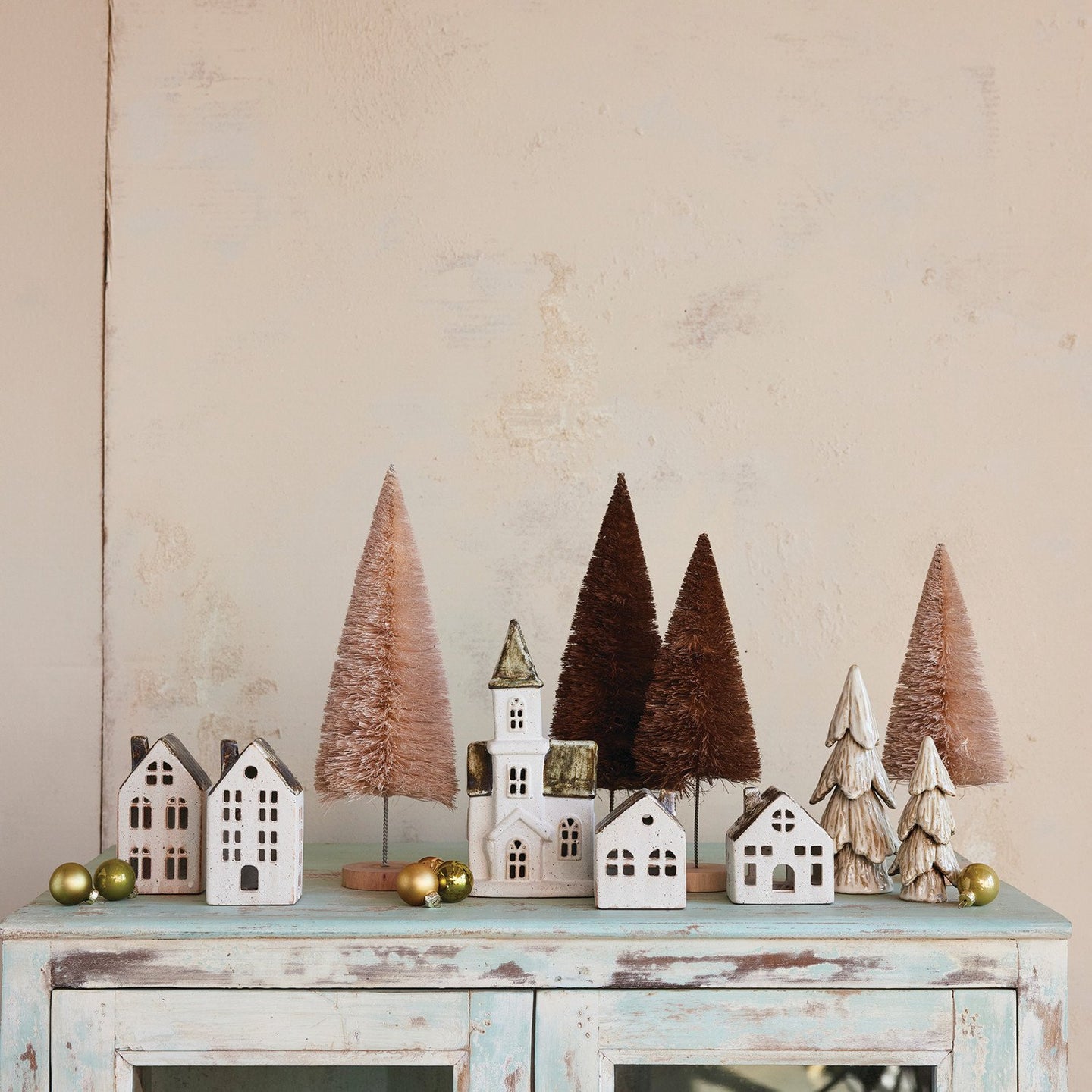 3"L x 2-1/2"W x 3-3/4"H Stoneware House, Reactive Glaze, White & Brown, 2 Styles (Each One Will Vary)