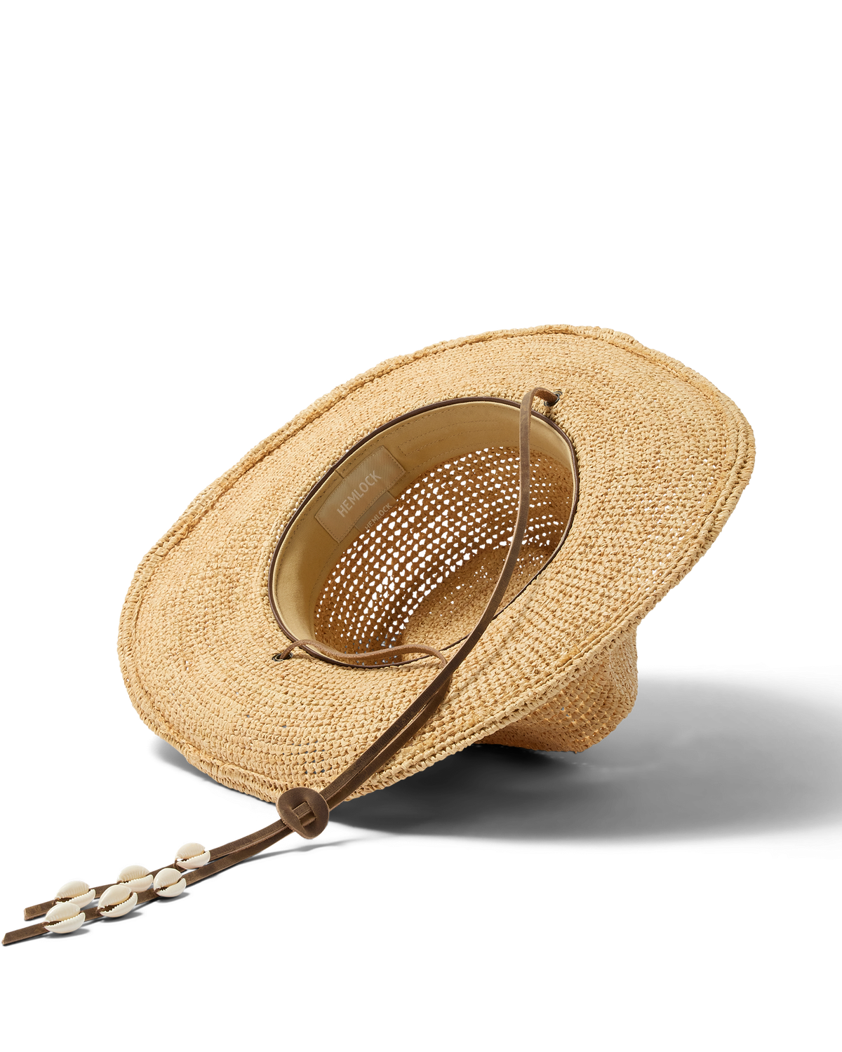 The Wynona Packable Raffia Cowboy Hat blends western influence with coastal ease in a relaxed cowboy silhouette. Crafted from premium raffia palm straw sourced from Madagascar, it's naturally durable and packable—designed to fold, travel, and reshape with ease. Finished with a genuine leather drawcord accented with seashell details and an interior size adjuster seamlessly integrated within the headband liner for a secure, custom fit.