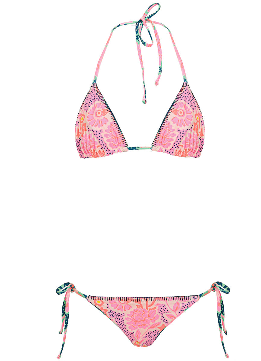 Turn heads at the water's edge in the Alana Bikini Top — a reversible style that gives you two stunning looks in one. Soft blush florals meet delicate embroidery for a feminine finish that feels as good as it looks. Tie it at the neck and back for a custom fit, then flip it inside out when you're ready for a fresh vibe.