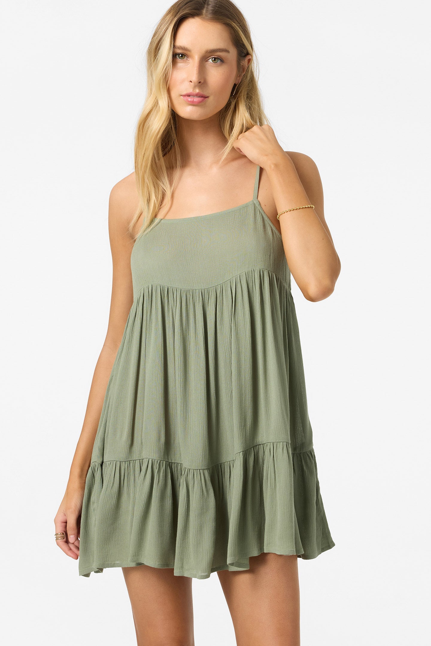 - Adjustable Straps, Tiered Skirt