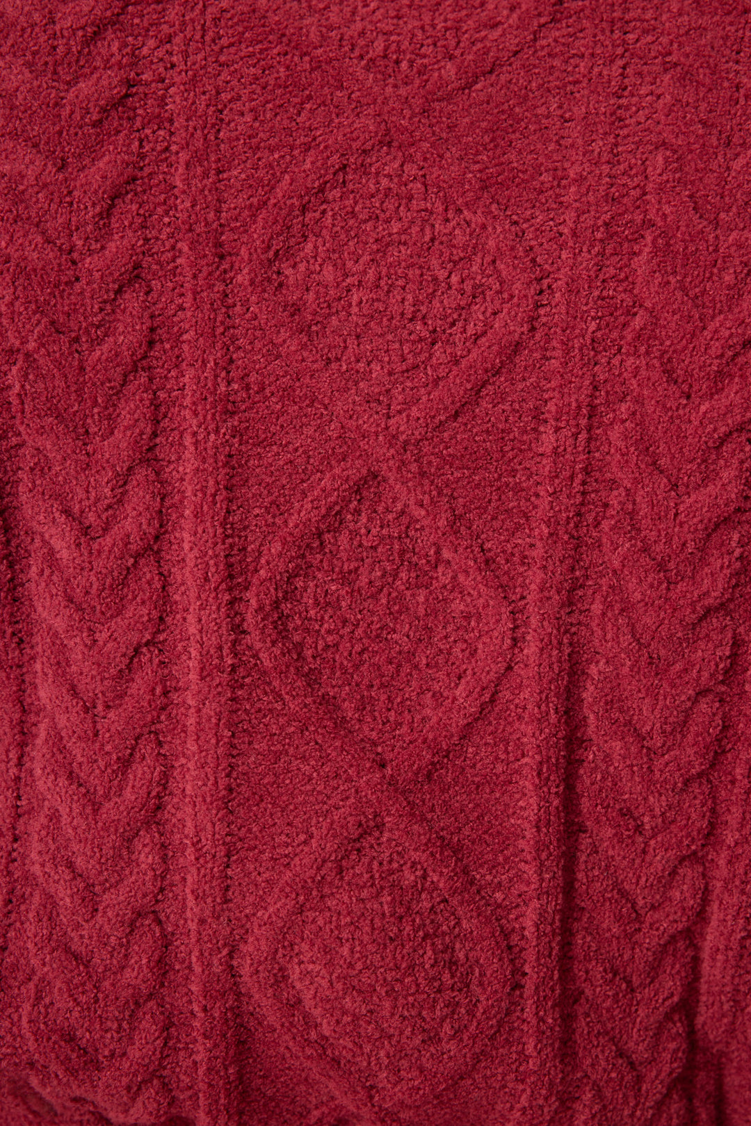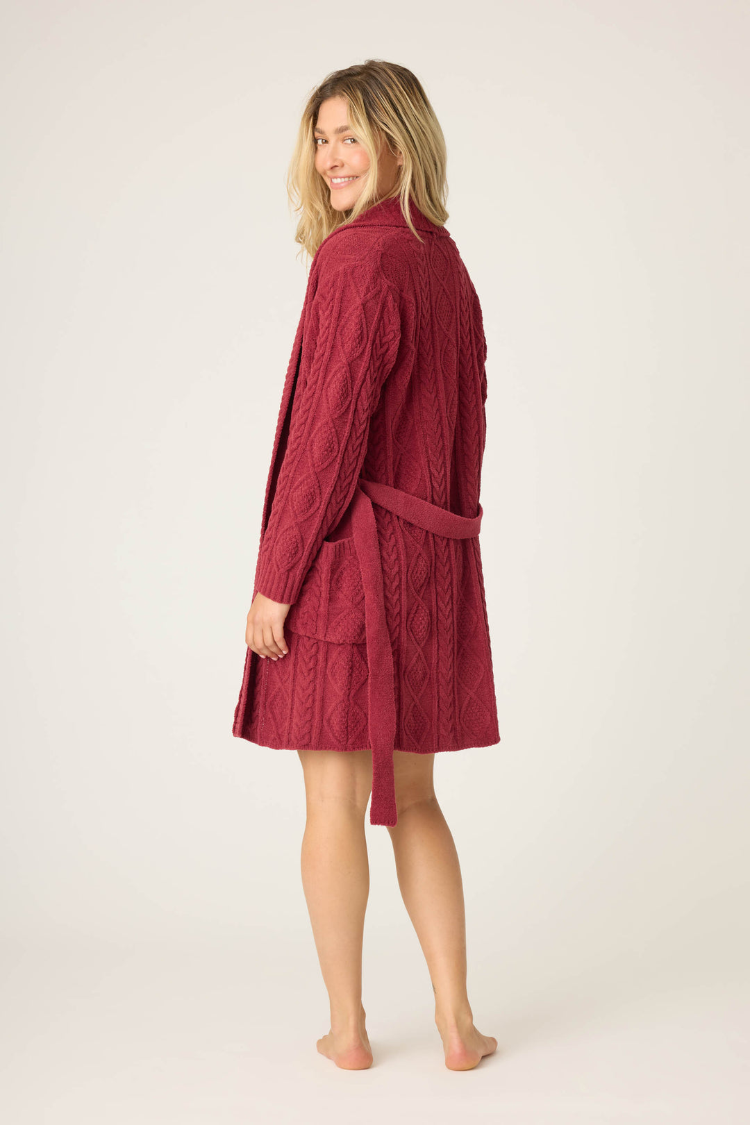 The ultimate in at-home coziness, this chenille cable knit robe is made for slow mornings and relaxed nights in. The deep wine hue feels warm and seasonal, with front pockets and a removable belt for easy wear from sipping coffee to curling up with a book.