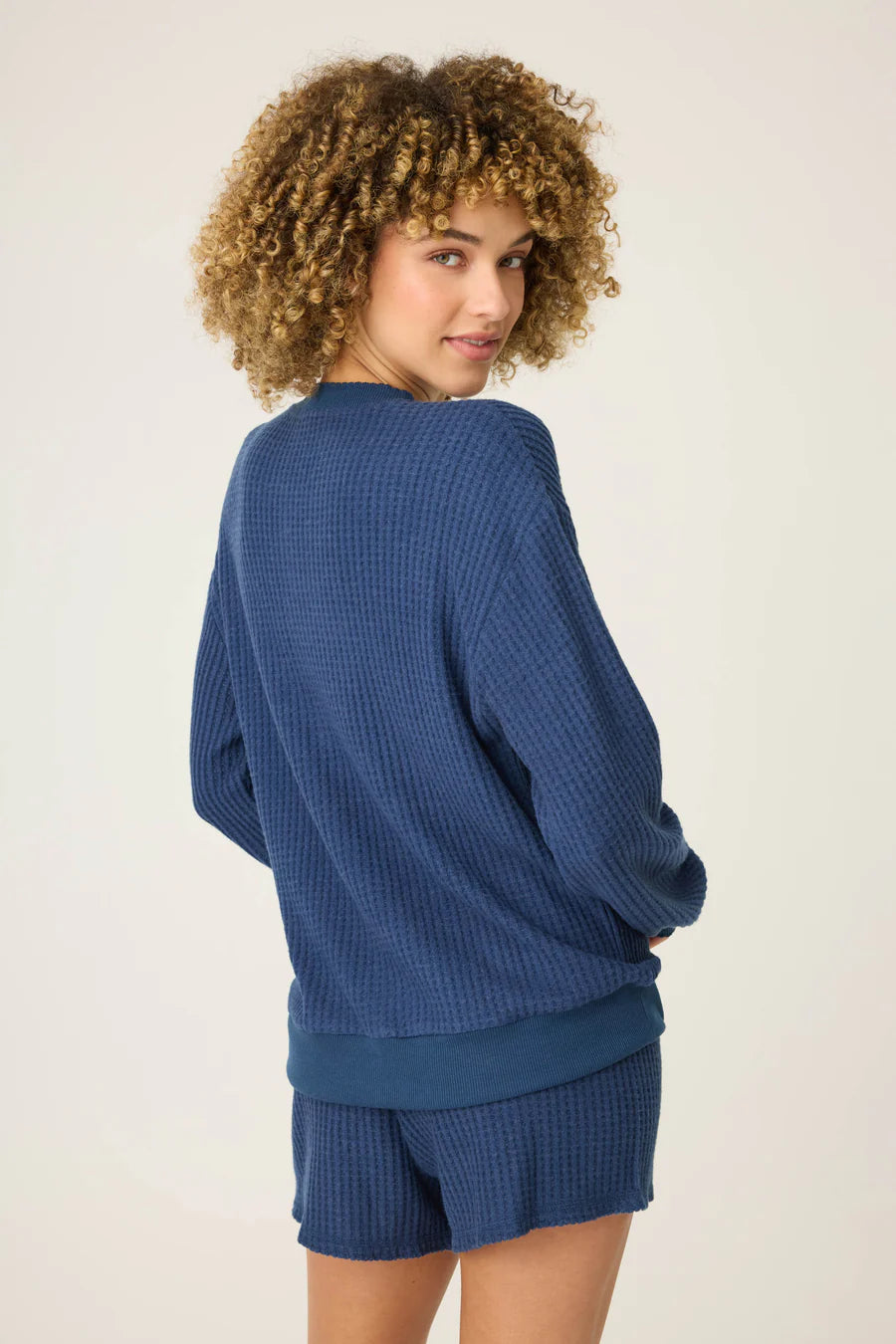 There’s something about soft waffle knit in a calming shade of blue that makes everything feel a little more peaceful. Crafted from our super thermal knit with a cozy hand feel, this long-sleeve henley features a relaxed fit with classic ribbed trim and a five-button neckline. Just add tea, slippers, and a moment to yourself.